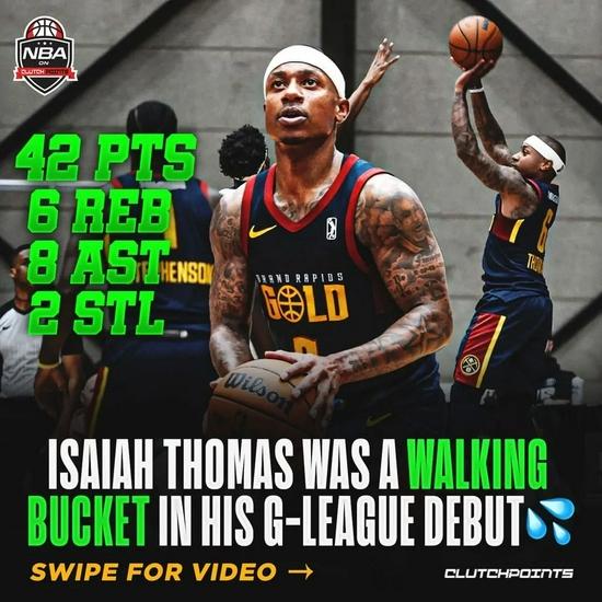 但是小托马斯并没放弃,两天之前,掘金发展联盟球队黄金队官宣以赛亚-托马斯加盟!没想到他首秀就有如此惊人的表现!NBA球员拉文和莫兰特都纷纷点赞!莫兰特表示:“快让他回来吧。”拉文写道:“让他回到NBA吧,赶紧的!”