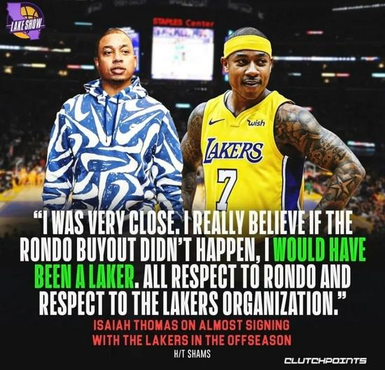 “休赛期湖人对我非常有意。如果隆多没有买断的话,我现在会是湖人球员!我对隆多和湖人队充满尊重,如果能够加入湖人,本赛季跟优秀的球员一起合作,那对我来说是一种荣幸。”小托马斯说道。