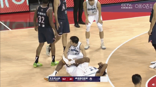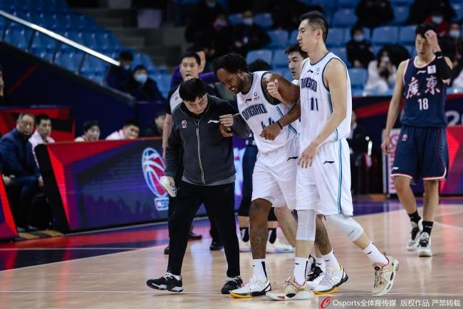 青岛外援不慎踩在易建联脚上 受伤被搀扶离场