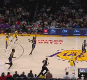 在第四节,湖人在最后的7分多钟的时间内被对手打出了一波23-7攻击波。当时,湖人以95-98落后于国王的时候,又是蒙克站了出来,他在外线接过了威少的传球之后,直接张手就来,投进了这记扳平比分的三分球。