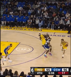 在两支球队打得十分胶着的情况下,库里反手上篮成功,他的连续得分帮助球队在最后的9.4秒110-107领先于步行者。然而,正当大家以为步行者要输球的时候,没想到步行者最后时刻凭借着霍勒迪还剩5秒的绝平球将比赛拖入到加时。
